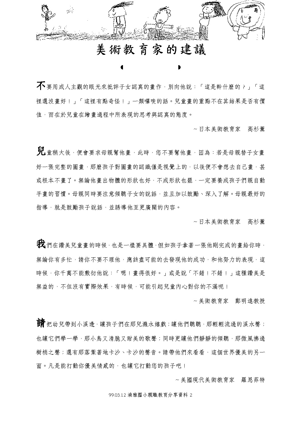 有一次我送兒子到學校去,在校門口遇見一位也來送孫子的老伯伯對我說:「來,這張紙送你兒子參考!」我不以為意地收下,到了辦公室,仔細看了便條上紙上的字,是老伯伯用心、工整的筆跡,寫著:
