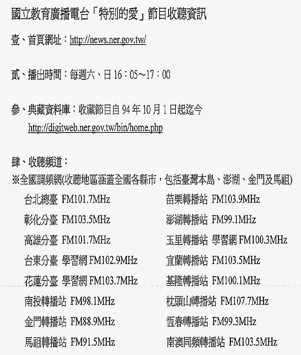 教育廣播電台-特別的愛-節目收聽資訊